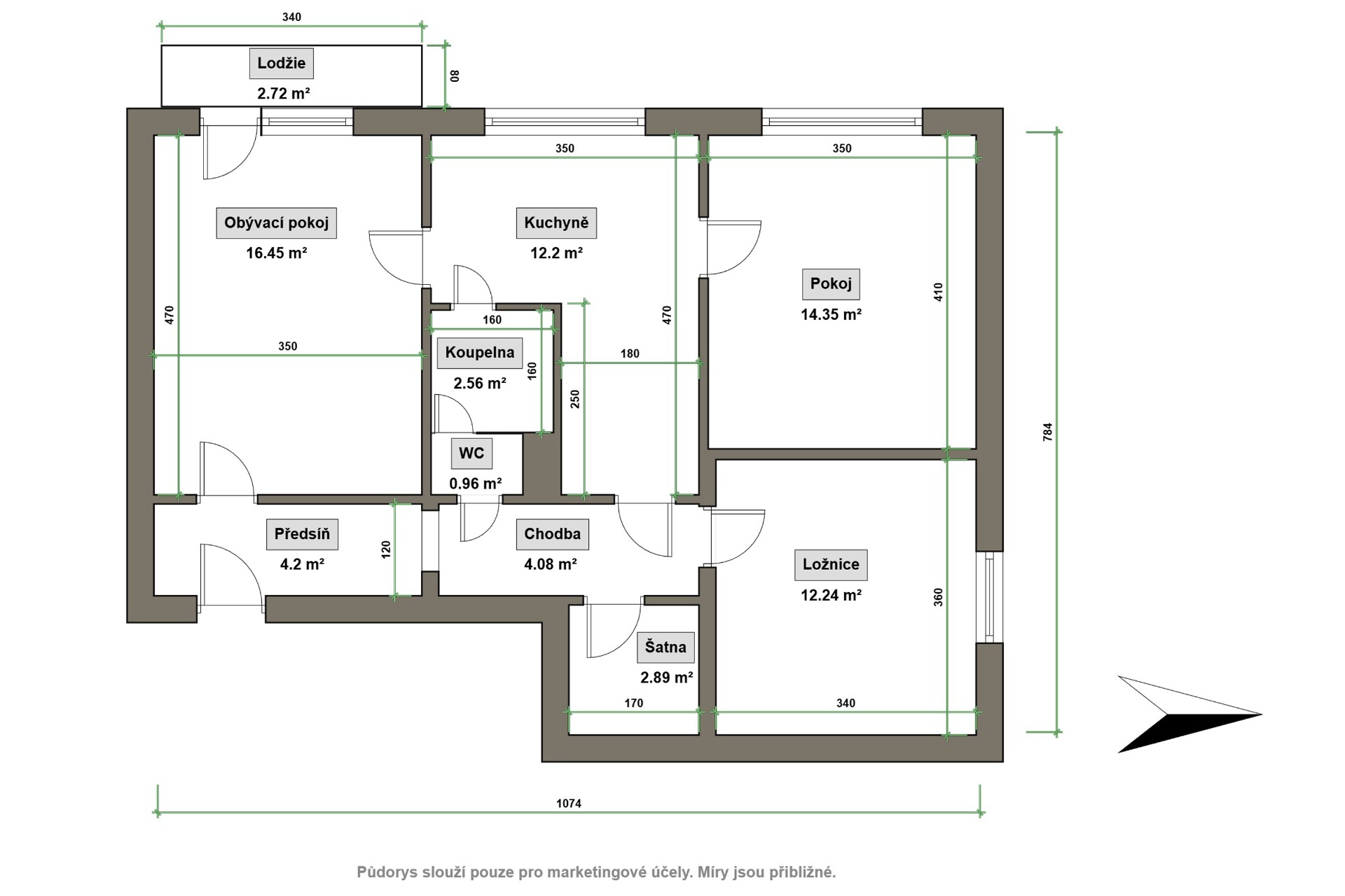 Díky své poloze, dispozici a velikosti je byt ideální k vlastnímu bydlení, nebo jako investice k pronájmu. Dispozice zahrnuje obytný pokoj, ložnici, dětský pokoj (vše neprůchozí), kuchyň a koupelnu se sprchovým koutem a toaletou. Byt je v původním stavu, určený ke kompletní rekonstrukci